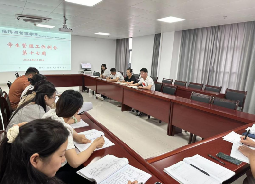 2024年6月18日,太阳成集团122ccvip在行政楼725会议室召开本学期第十七周员工管理工作例会,副经理秦品德、书记助理叶赵强以及全体辅导员参加会议,会议由经理吴玲主持。