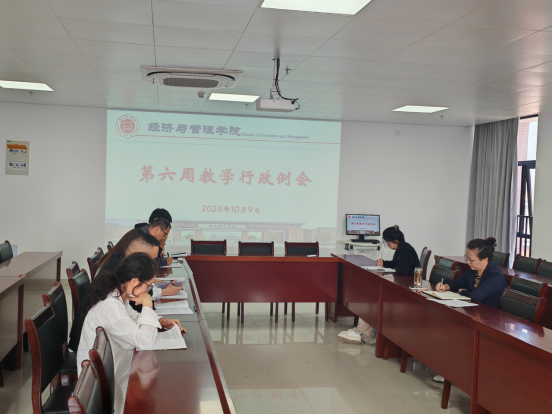 2024年10月9日,太阳成集团122ccvip在新行政楼725召开新学期第六周教学行政例会,会议由经理吴玲主持,经理助理张珊、实训中心主任及各教研室主任参加会议。