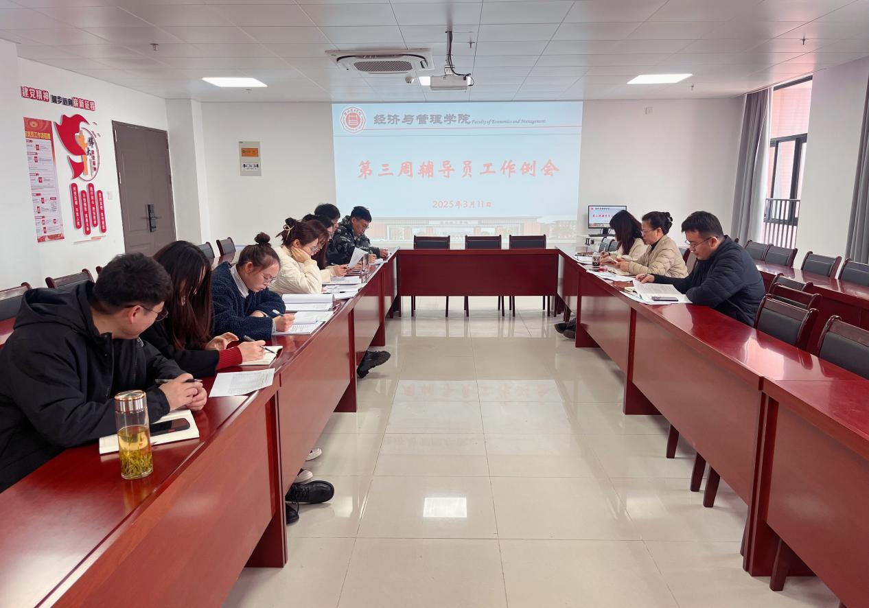 2025年3月11日,太阳成集团122ccvip在行政楼725会议室召开了本学期开学第三周的员工管理工作例会。公司书记助理员禹辛、团总支书记王绎程及全体辅导员参会,会议由经理吴玲主持。