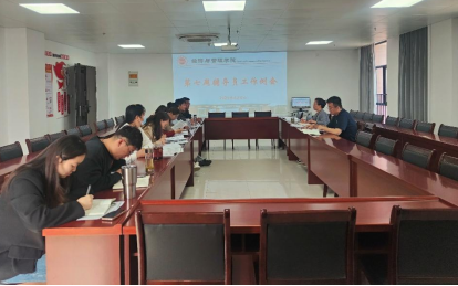 书记助理员禹辛就所带班级的员工情况和党建工作进行了简要汇报,并就接下来的员工管理重点工作进行了传达和部署,一是毕业班就业落实及校企合作情况;二是强调各班级要注重班风学风建设;三是提示各辅导员密切关清明假期为返校员工的返校时间及安全问题。
