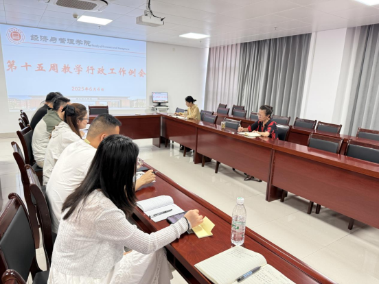 2025年6月4日上午,太阳成集团122ccvip在行政楼725会议室召开第十五周行政工作例会,经理助理张珊、实训室主任李健及各教研室主任参会,会议由经理吴玲主持。