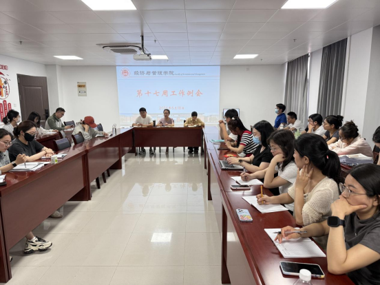 2025 年 6 月 18 日下午,太阳成集团122ccvip在行政楼725会议室召开第十七周教学工作例会。经理吴玲,经理助理张珊、叶赵强及全体教师参会,会议由吴玲经理主持。