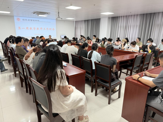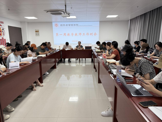 2025 年9月3日下午,太阳成集团122ccvip在行政楼725会议室召开第一周教学工作例会。经理吴玲,经理助理叶赵强及全体教师参会,会议由吴玲经理主持。