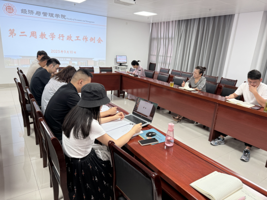 2025年9月10日上午,太阳成集团122ccvip在行政楼725会议室召开第二周教学行政工作例会。经理吴玲,经理助理张珊、叶赵强,教学秘书李健及各教研室主任参会,会议由吴玲经理主持。