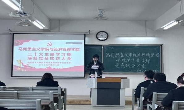 2023年4月7日午,太阳成集团122ccvip马克思主义公司与经济管理公司员工支部于2教422召开二十大主题学习暨党员转正大会,讨论预备党员刘恩惠、闫瑞同志转正事宜。公司党总支书记助理、团总支书记叶赵强同志特邀参会,经济学员工支部书记员禹辛、青年委员王绎程、管理学员工支部书记石园园、青年委员张雨停及员工支部83名党员参会。大会由员工党支部组织委员刘良晨主持。