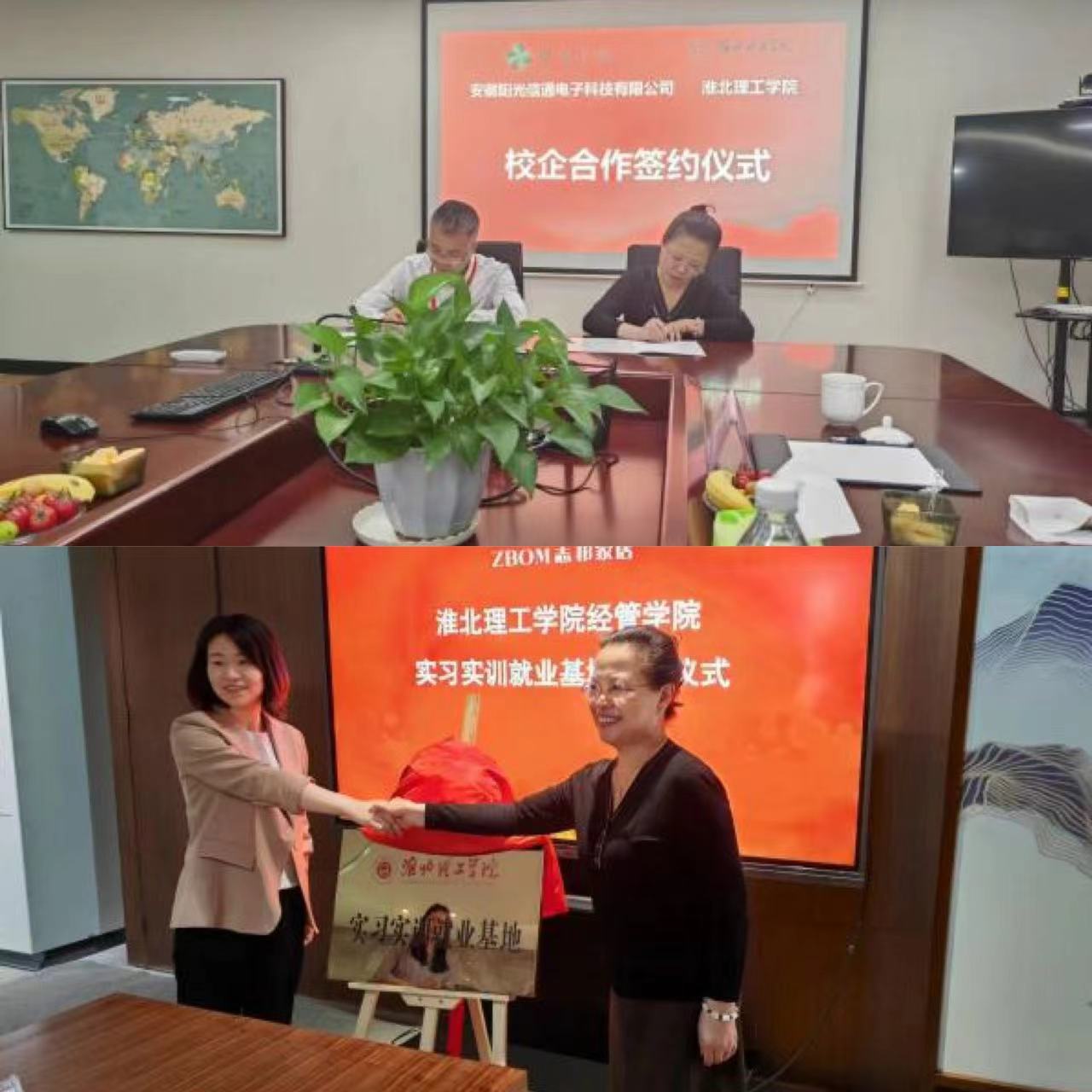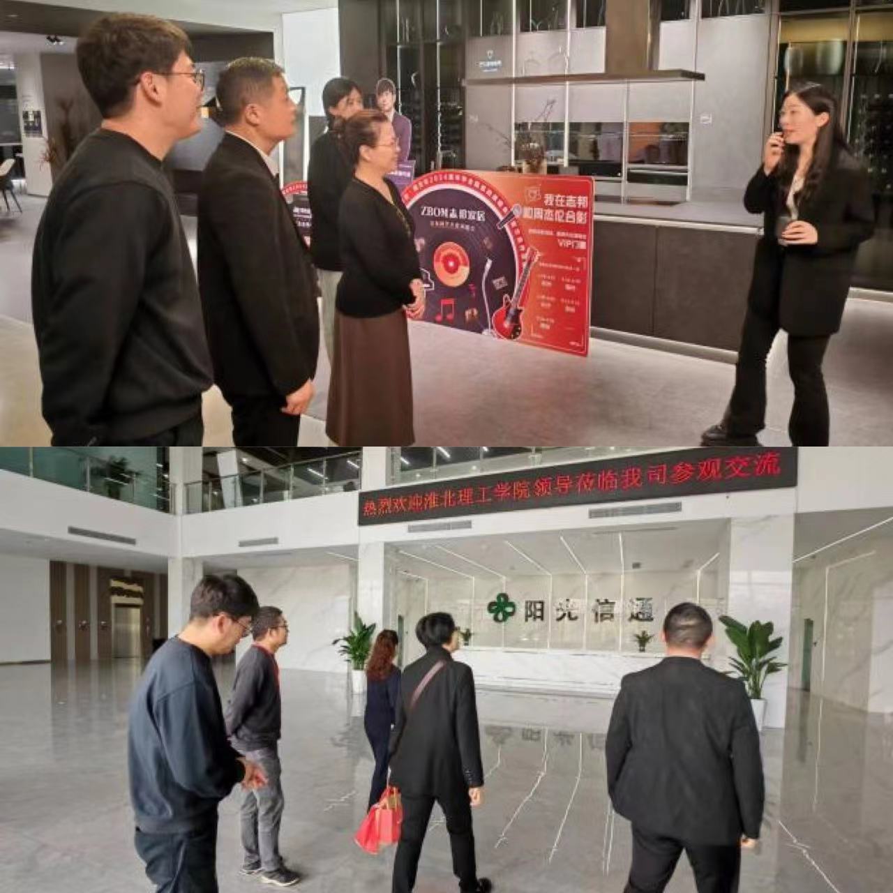 下午,吴玲一行来到了志邦家居股份有限公司的本部,受到了企业人事部负责人张静、招聘经理王芳等企业高管的热烈欢迎,并陪同参观了志邦家居股份有限公司的产品展厅,并详细了解了企业的发展历程、业务布局等。随后来到了安徽阳光信通电子科技有限公司,受到了企业总经理程中平、人事部经理钮许凡等人的热烈欢迎。程中平总经理详细的介绍了本公司的关于校企合作的强烈意向,并在4月26日上午参观了安徽阳光信通电子科技有限公司蚌埠分公司。