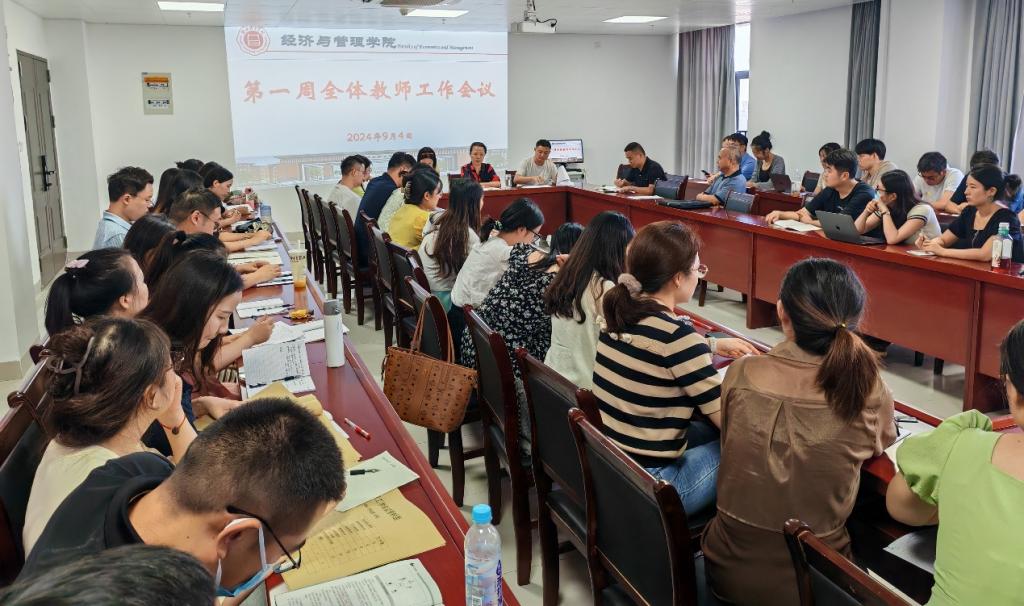 太阳成集团122ccvip于2024年9月3日下午2:30分,在行政楼725会议室召开2024-2025年度第一学期第一周教学工作例会。会议由经理吴玲主持,副经理秦品德、经理助理张珊以及全体教师参加。会议共分三个阶段有序进行。