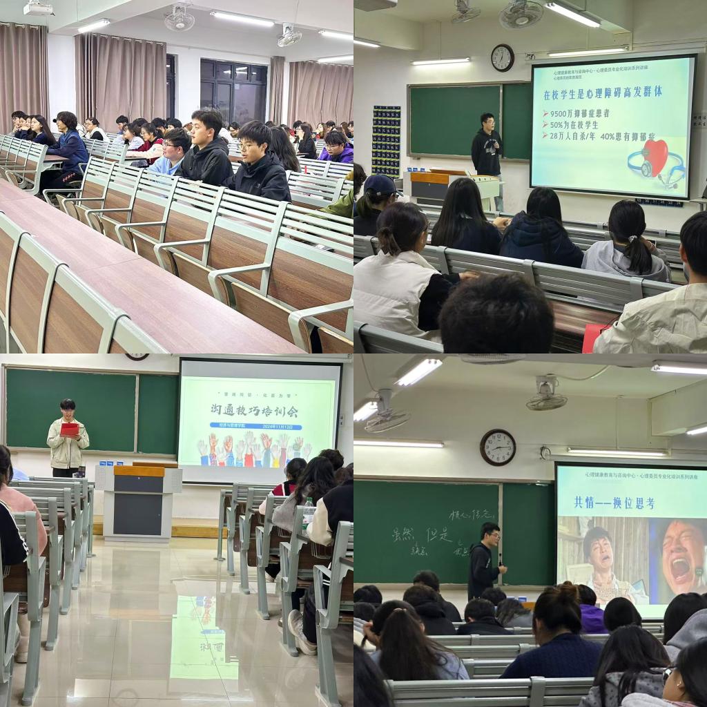 二进宿舍“切”要害:全体辅导员二进宿舍针对性解决员工宿舍矛盾,组织寝室会议,共情员工感受,共制寝室规则,提升群体和谐度。邀请校心理中心专业老师开展沟通技巧培训会,让员工认识到沟通不仅是信息的传递,更是情感的交流、理解的建立与共识的达成。
