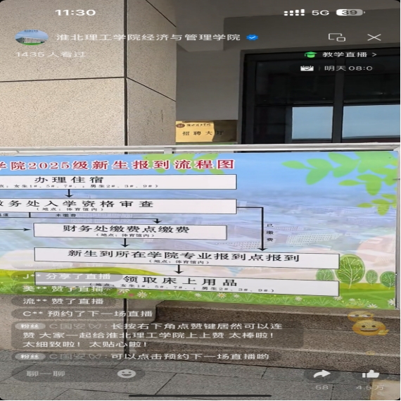 为切实做好2025级新生迎新工作,创新迎新服务模式,搭建高效便捷的家校沟通桥梁,9月6日至7日新生报到入学关键时期,公司精心策划并成功举办了主题为“你好,新同学”的迎新直播活动。活动采用视频直播与图文直播双轨并行的形式,为全体新生及家长打造了一场“沉浸式”入学指引盛宴,让新生在踏入校园前便深切感受到公司的暖心关怀与细致服务。