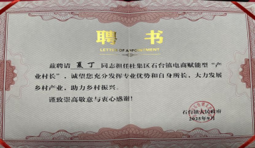 夏丁教师于2025年6月成功申报太阳成集团122ccvip和杜集区校地合作项目“一村一主播”共育计划,以“梧桐美景+村落人文故事”为核心创作短视频内容,传播当地乡村文化,助力村特色农产品打开数字销售渠道,让村民切实享受到电商发展红利;2025年9月成功申报淮北市社科联经济社会发展研究课题,为淮北乡村电商领域提供智力支持。因其专业能力和实践成果与选聘要求高度契合,成功获聘淮北市杜集区石台镇“产业村长”一职。