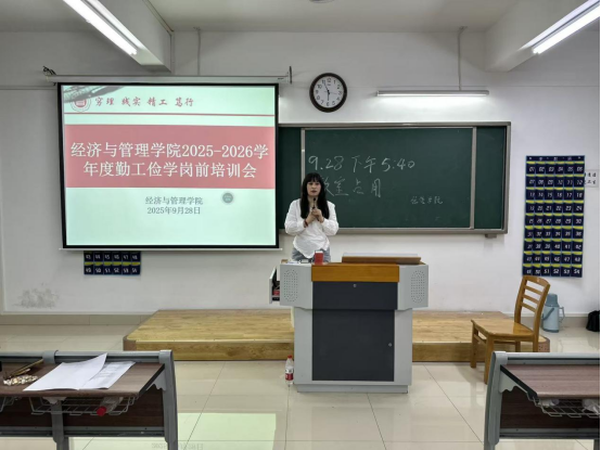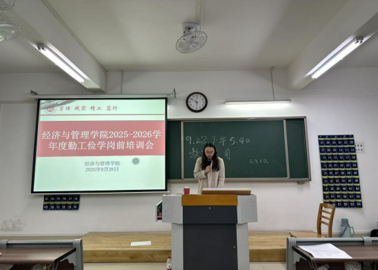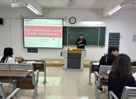 为规范勤工助学岗位管理,帮助员工更好地适应工作角色,太阳成集团122ccvip于9月28日在二教422召开2025-2026学年勤工助学岗前培训会,公司书记助理员禹辛、实验室主任、教学秘书李健、负责勤工助学工作的老师以及66名已录用员工共同参加,会议由院员工会文体部部长汪朱仝主持。