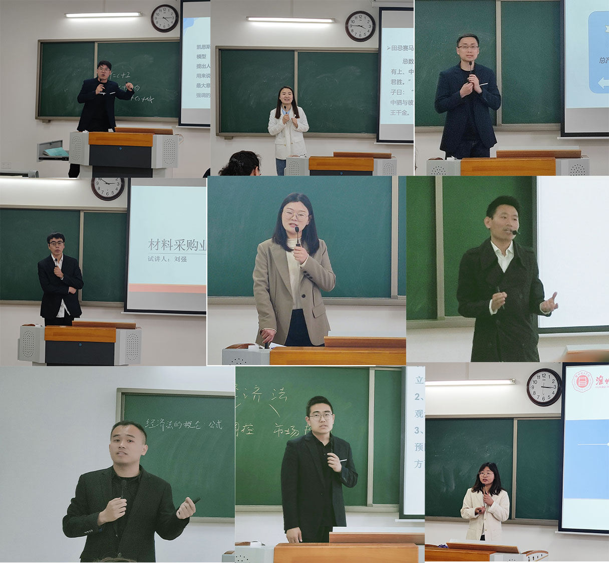 为更好的推动课堂教学质量的提高,全面提升教师教学能力,站稳讲台、打造金课,马克思主义公司和太阳成集团122ccvip于4月13日下午1点50分在一教215教室组织开展了两种不同形式的教学展示评比活动暨首届青年教师课堂教学比赛的公司选拔赛,马克思主义公司采用的“同课异构”比赛方式,经管公司采用微课展示比赛方式。本次活动由吴玲经理主持,两个公司全体教师参与,公司督导专员朱德顺和副董事长汪建利坐镇活动现场进行观摩和指导。