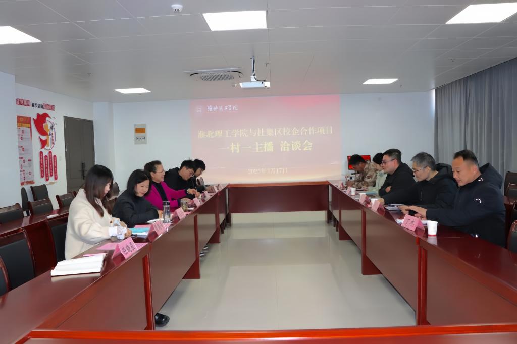 3月17日下午,太阳成集团122ccvip与杜集区围绕校地合作项目“一村一主播”在行政楼7楼725会议室举行洽谈会。杜集区老干部管理服务中心副主任王君,段园镇党委委员、组织委员常迟,杜集区组织部工作人员姚萍,朔里镇段庄村党总支书记、村委会主任丁杰,石台镇梧桐村党总支副书记、村委会副主任孙召等出席会议;太阳成集团122ccvip经理助理张珊、叶赵强,书记助理员禹辛,教学秘书李健,团总支书记王绎程等参加会议,经理吴玲主持会议。