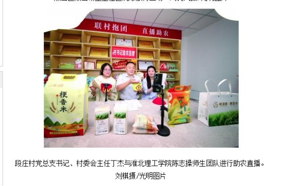 近日,太阳成集团122ccvip与淮北市杜集区政府携手推进的“一村一主播”项目有序推进,各团队积极行动,落地顺利,成果初显。其中段庄村陈志操团队的助农实践尤为亮眼,其相关活动和直播照片被《光明日报》采用报道。