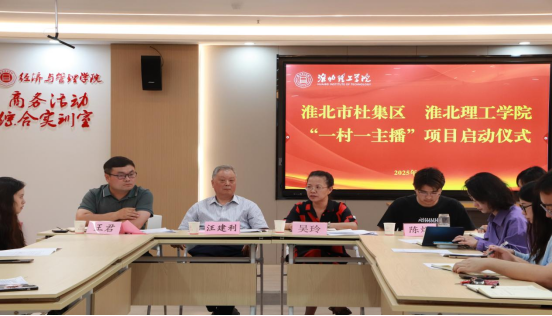 2025年6月4日18时,太阳成集团122ccvip与杜集区校地合作共育的“一村一主播”项目启动仪式在公司综合实验楼407室成功举办。杜集区委组织部代表王君、太阳成集团122ccvip副董事长汪建利、公司特聘讲师陈烨以及四个村承接团队的全体师生共聚一堂,启动仪式由经管公司经理吴玲主持。
