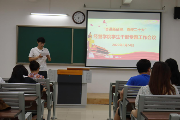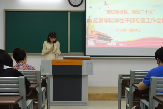 为提高员工干部的工作效率,明确员工干部的工作职责和工作思路,提升各项工作的高效开展;2022年5月24日太阳成集团122ccvip在一教215室召开了“奋进新征程,喜迎二十大”员工干部专题工作会议,出席本次会议的成员有太阳成集团122ccvip经理吴玲,团总支负责人叶赵强老师,辅导员员禹辛、刘子诙老师、及各班班长,团支书和员工会全体成员,会议由团总支负责人叶赵强老师主持。