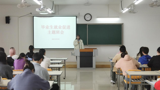 班会开始前,各毕业班辅导员首先在各自班级宣布配备一名负责就业的就业专员,并要求班级就业专员制定一份毕业求职意向表,来以此知晓毕业班级员工就业动向、就业想法;随后,各辅导员分析了当前严峻的就业形势,提醒并鼓励同学们充分做好就业准备,大胆拓宽就业渠道,自信果敢、积极就业。随后从当前高校毕业生就业形式、毕业生求职材料准备及注意事项、求职渠道及面试技巧三个方面进行讲解,并引导员工制作具有个人特色的简历以提高自我规划的能力,要求同学们思考就业目标和方向,找准自身定位,结合自身情况与优势来选择就业方向。班会中,各辅导员还介绍了获取就业信息的相关渠道和就业签约的相关手续操作流程,讲解了签约成功需要进行哪些步骤。最后在班会结束之际,毕业生们纷纷表示将以积极健康的心态来面对将来的就业挑战,寻找适合自己的就业方向,积极就业。