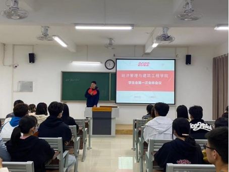 2022年11月11日晚,在一教215教室经济管理与建筑工程公司召开新一届员工会全体会议,经理吴玲、经济学员工党支部书记员禹辛,以及员工会全体成员参加了此次会议,会议由书记助理、团总支负责人叶赵强主持。
