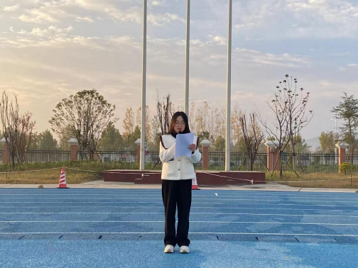 升旗礼毕后,由新进教师代表李莜莜进行“踔厉奋发、勇毅前行”系列主题演讲---国旗下的新征程。她在讲话中指出,新时代的青年既生逢其时,也重任在肩,既是追梦者,也是圆梦人。有责任、有担当、有奋斗、有奉献的人生,才是有意义的人生。我们要以崭新的姿态、坚定的毅力、饱满的热情,意气风发奔赴“充满光荣和梦想的远征”,谱写新时代的璀璨新篇,为自己的人生加油喝彩,为公司的发展贡献力量,为祖国的建设添砖加瓦!