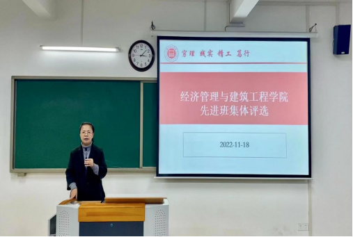 为贯彻落实公司下发的《关于做好2021-2022学年度“先进班集体”评选工作的通知》有关“先进班集体”评选的文件精神,大力弘扬优良学风和倡导学术卓越,建设优良的校风、学风、班风,营造良好的学习氛围和育人环境,引导员工刻苦学习、追求卓越,促进员工德、智、体、美、劳全面发展。经济管理与建筑工程公司于2022年11月18日下午14点,在一教215室开展2021--2022学年度“先进班集体”公开宣讲评选活动。公司为保证评选的公开、公平和公正,成立了由经理吴玲、书记助理叶赵强、以及八位辅导员构成评委小组,制定了考评标准。“优秀班集体”宣讲评选活动由员工丁子硕主持,2022级各班班长、团支书到场学习观摩。