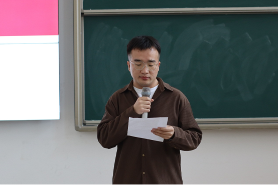 会议第三项,员工会志愿者代表文体部部长周宗耀发言,他表示运动会是一项综合性教学活动,校运会要想组织开展好,需要各方的努力和配合,希望经管公司全体员工运动员严格遵守老员工日常行为规范和运动员守则,服从大会安排,尊重裁判及对手,发扬顽强拼搏的精神,赛出风格、赛出水平。希望运动员们发扬更高,更快,更强的体育精神,放松心态,全力以赴,为公司争光添彩。