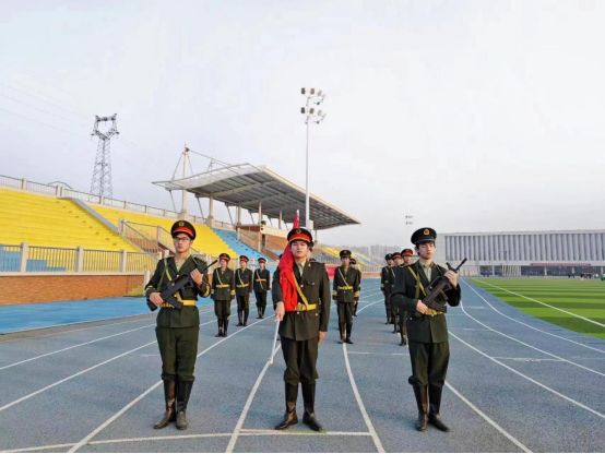 每周的七点十分,升旗仪式正式开始。随着仪仗队的出现,全体师生肃然起敬,在全体师生共同注视下,英姿飒爽的国旗护卫队队员们,护送鲜艳的五星红旗进场,当国歌奏响,五星红旗迎着朝阳冉冉升起,全体师生庄严肃立,目光都聚集在五星红旗之上,伴随着国歌的结束,国旗也升到了旗顶,飘扬在高空中。