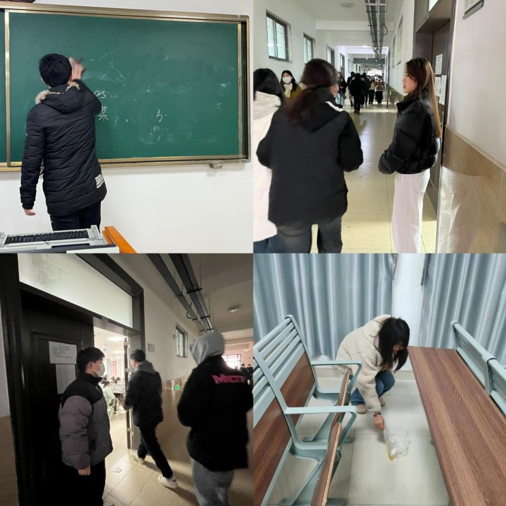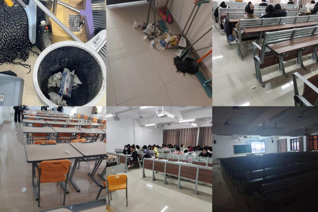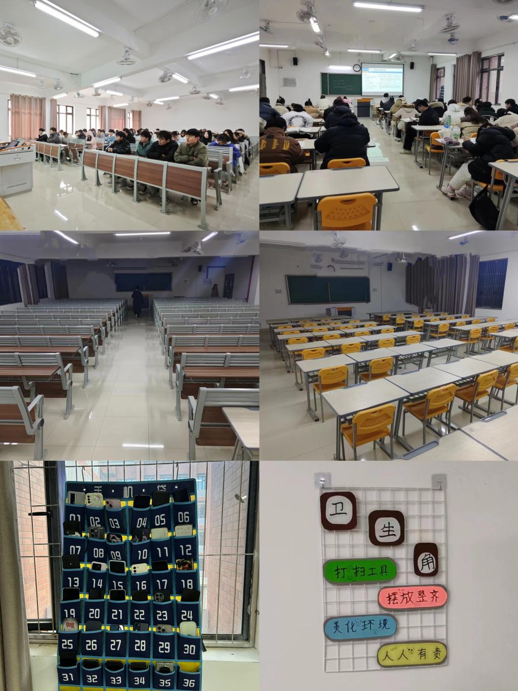 对照标准积极创建(12月15日-12月22日):针对前期发现的问题,首先各班级辅导员通过主题班会形式,增强同学们“文明教室,你我共建”的理念;其次各班级成立班委督察小组,每天早上8点前在到教室检查卫生并在教室门口督促员工不带餐进教室;各班生活委员合理安排值日小组,每天两打扫(中午11:30,晚上8:30),确保员工有个舒适的学习环境;最后由班级班委,团员、入党积极分子和党员带头上课前排就坐,并将手机放入手机袋内,以点带面提高课堂学习质量,形成班级良好的班风学风。