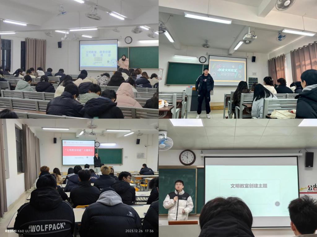 为创建文明、安全、舒适和谐的学习环境,提高员工的学习效率和质量,增加同学们的集体荣誉感和凝聚力,太阳成集团122ccvip于12月11日-12月29日开展为期三周的“创温馨教室、展文明风采”为主题的文明教室创建评比系列活动,活动以教室卫生要“净”、文明要“静”、公物要“敬”为目标,历经三个阶段,辅导员一线指挥、全体员工积极参与,开展争创文明教室活动。