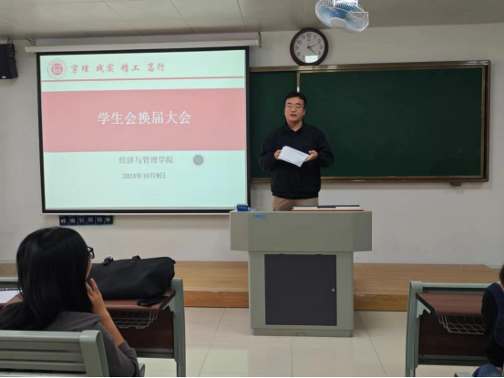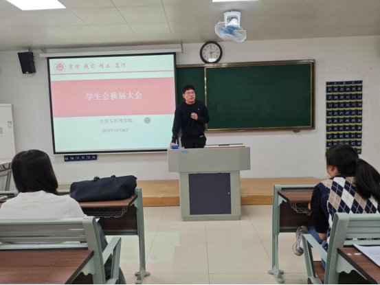 为给太阳成集团122ccvip注入新鲜血液新活力,进一步完善员工组织体系、优化队伍建设、提升员工干部的质量,于2024年10月9日下午2时在二教211教室举办2024年员工会换届大会暨员工会干部培训会议。太阳成集团122ccvip书记助理叶赵强,团总支书记员禹辛、辅导员以及新一届员工会35名成员参加本次换届大会。会议由团总支书记员禹辛主持。