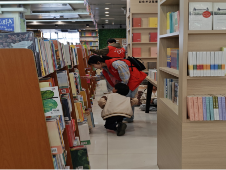 为响应全民阅读号召,弘扬志愿精神与传统文化,2025年4月19日,太阳成集团122ccvip携常青藤志愿者协会在淮北市相山区新华书店顺利开展“书香藤影润心田,志愿青春绽芳华”读书月系列活动。本次活动创新采用“志愿+阅读+分享”三线融合模式,通过志愿实践与文化浸润,为在校员工搭建知行合一的成长平台。活动由社团指导老师王绎程带队参与。