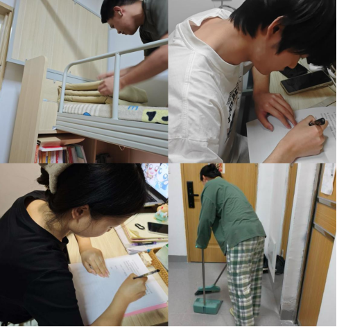 全体辅导员携党员、入党积极分子构成的“宿舍焕新导师团”二进宿舍,通过“书桌收纳”、“床铺整理”等场景亲身示范内务整理技巧。全院50余间宿舍开展“健康承诺书”签订。同步启动“三勤打卡挑战赛”,近300名员工通过小程序上传整理书桌、地面清洁等实景照片,形成“比学赶超”的良好氛围。