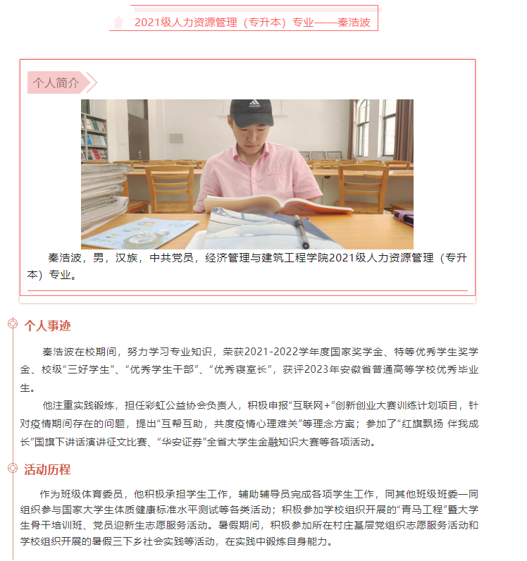 国家奖学金学子风采——秦浩波