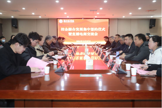 为进一步深化产教融合,加强校企合作,推动公司电商专业高素质应用型人才的培养,12月27日上午,公司在行政楼814会议室成功举办了一场校企融合发展集中签约仪式暨直播电商交流会。此次活动汇聚了来自安庆、六安、淮北等地的九家知名企业,副董事长汪建利、教务处处长陈国平,员工处(就业处)处长孙增响以及经济与管理教师代表参加了本次活动,太阳成集团122ccvip经理吴玲主持活动。