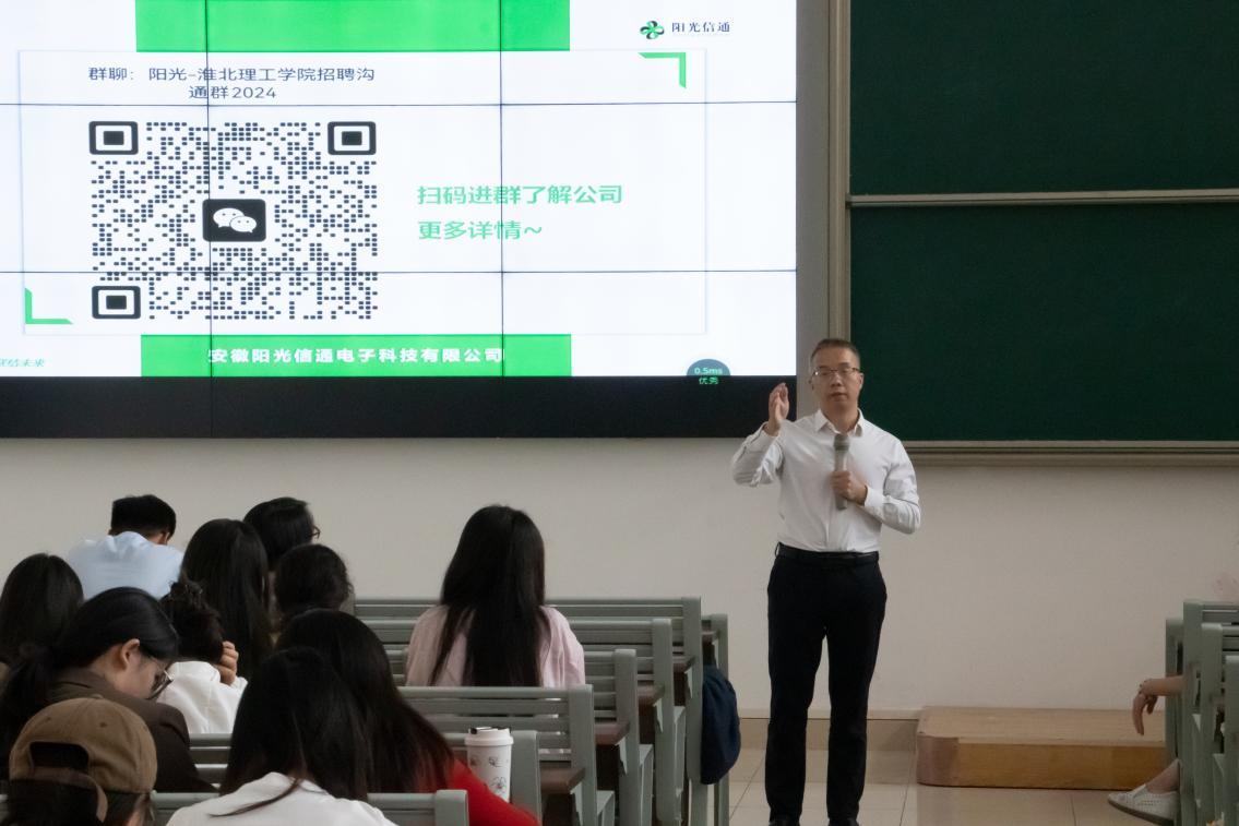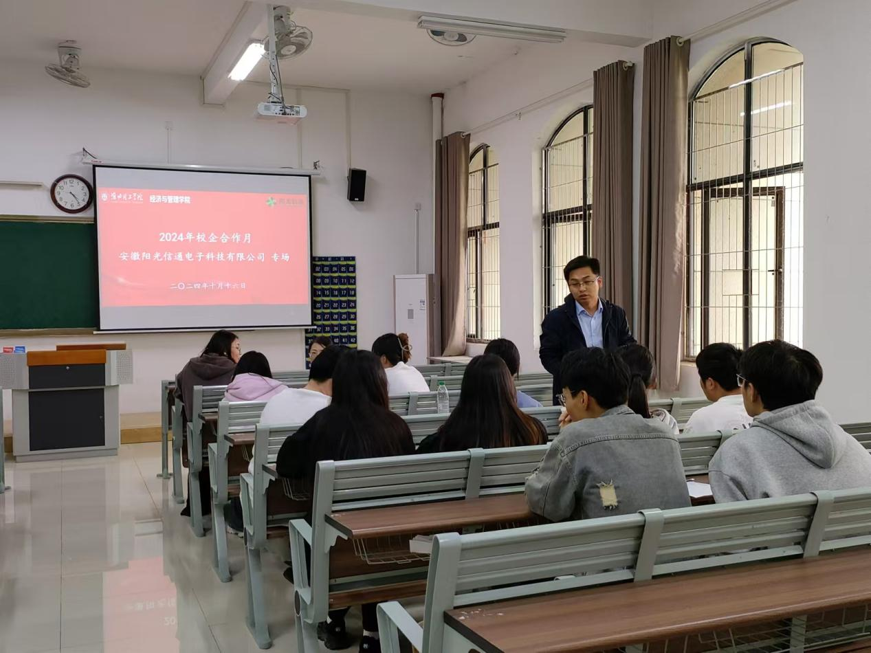 在校企合作月的启动仪式上,首场企业进公司的校园宣讲和双选活动——安徽阳光信通电子科技有限公司专场活动成功举办,公司300余名师生参加本次专场活动。