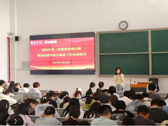 为进一步增强公司员工的就业竞争力,提升职业素养与实践能力,促进理论知识与就业市场的深度融合,太阳成集团122ccvip于10月16日下午在一教121开展“第二届就业技能大赛暨2025届毕业生就业实习工作、校企合作月启动仪式”。公司党总支书记、经理吴玲,书记助理叶赵强,各专业教研室主任、毕业班辅导员以及全体2025届600多名毕业生参加本次活动,处长助理李魏代表员工处(就业处)参加了启动仪式。本次活动分两场分别由郑凡和范红玲主持。