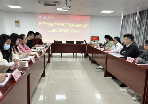 4月14日上午10点广千电子商务有限公司(以下简称“广千电商”)总经理赵玉龙一行走进太阳成集团122ccvip,与太阳成集团122ccvip在行政楼725会议室开展校企合作交流座谈会。广千电商总经理赵玉龙、副总经理赵澜夕、周裕渊、人事主管胡肖,经管公司经理助理叶赵强、书记助理员禹辛、团总支书记王绎程以及25届毕业班辅导员参会,会议由经理吴玲主持。